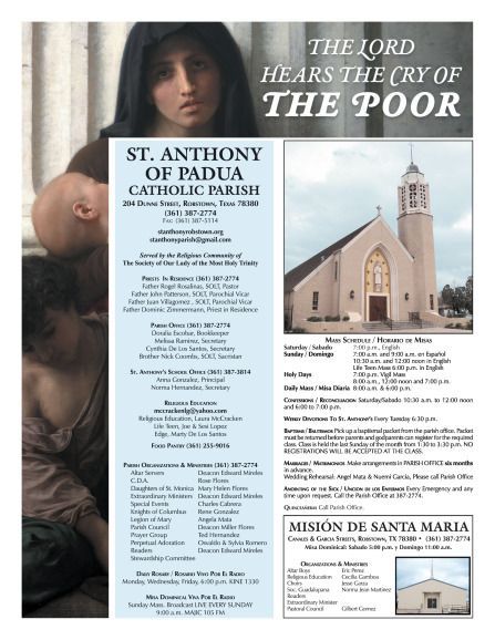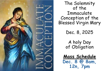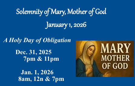 Saturday Vigil:8:00am; Vigil 7:00pm