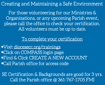We are a welcoming Catholic community called by God to live out the message of Christ in love and service to all people. Our parish mission is: