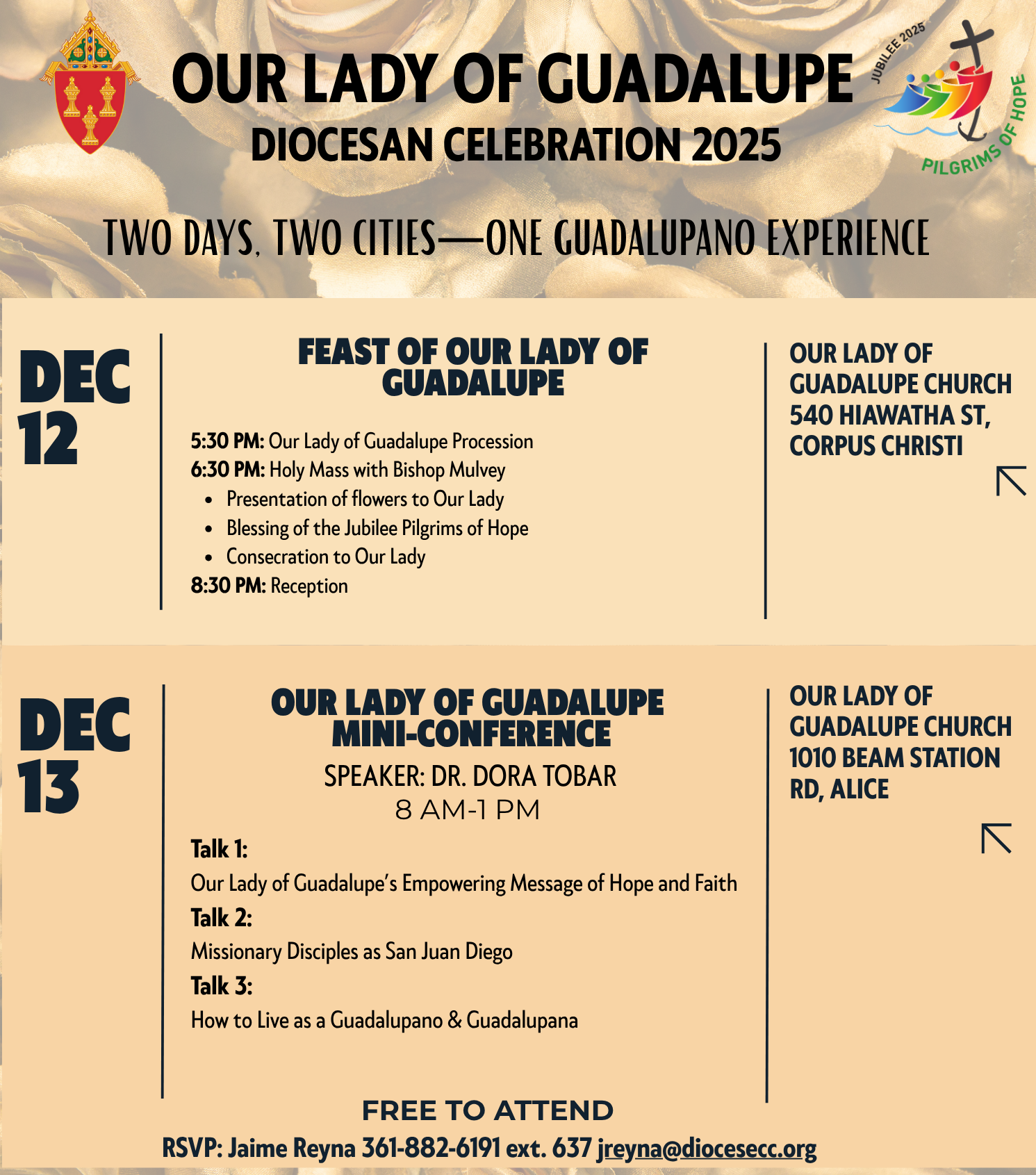 Sunday: 7:00am (Spanish), 9:30am(Spanish), 10:30am, Noon, & 6:00pm