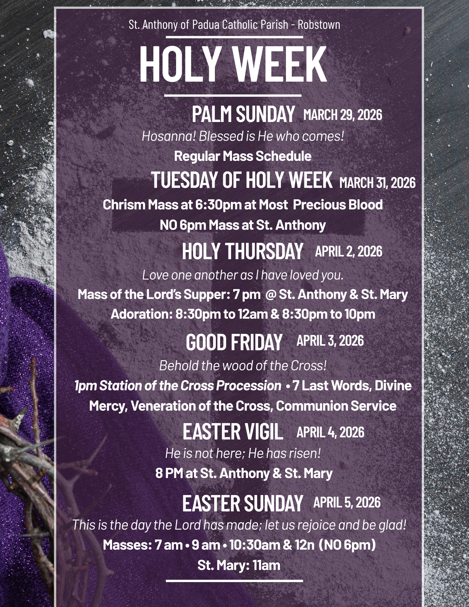 Our MyParish App will allow us to send you useful & important messages throughout the week regarding our parish life and events, and allow you to reply to messages or RSVP for events. There will be no need for parishioners with smart phones to remember to silence their phones before Mass. The App will send you a reminder to silence your phone 20 minutes before the Mass you select. There are many more great features! STAY CONNECTED WITH ST. ANTHONY CATHOLIC CHURCH
