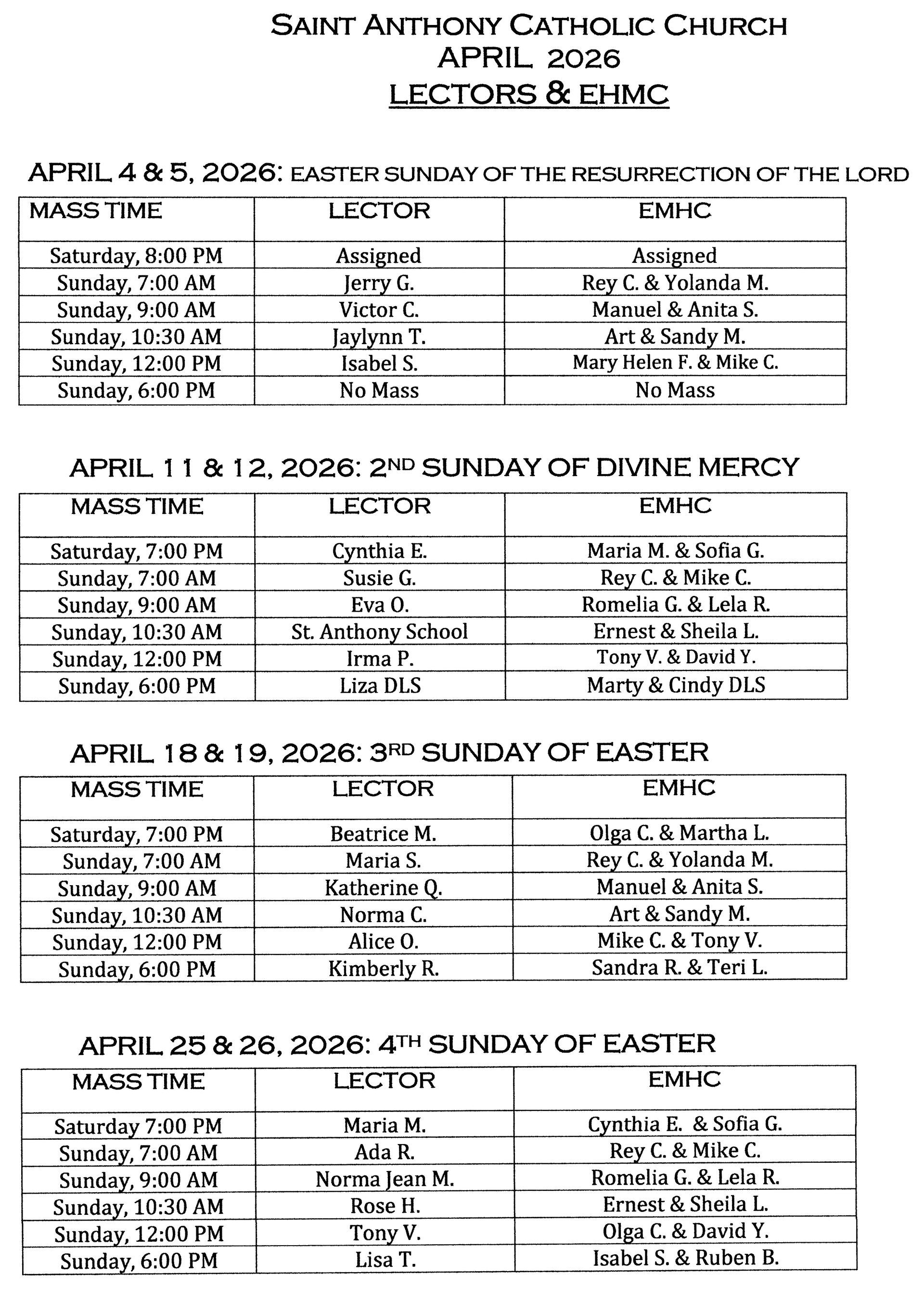 Mass Times