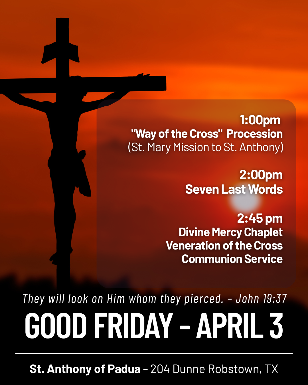 Saturday Vigil:8:00am; Vigil 7:00pm